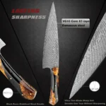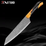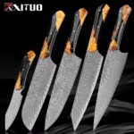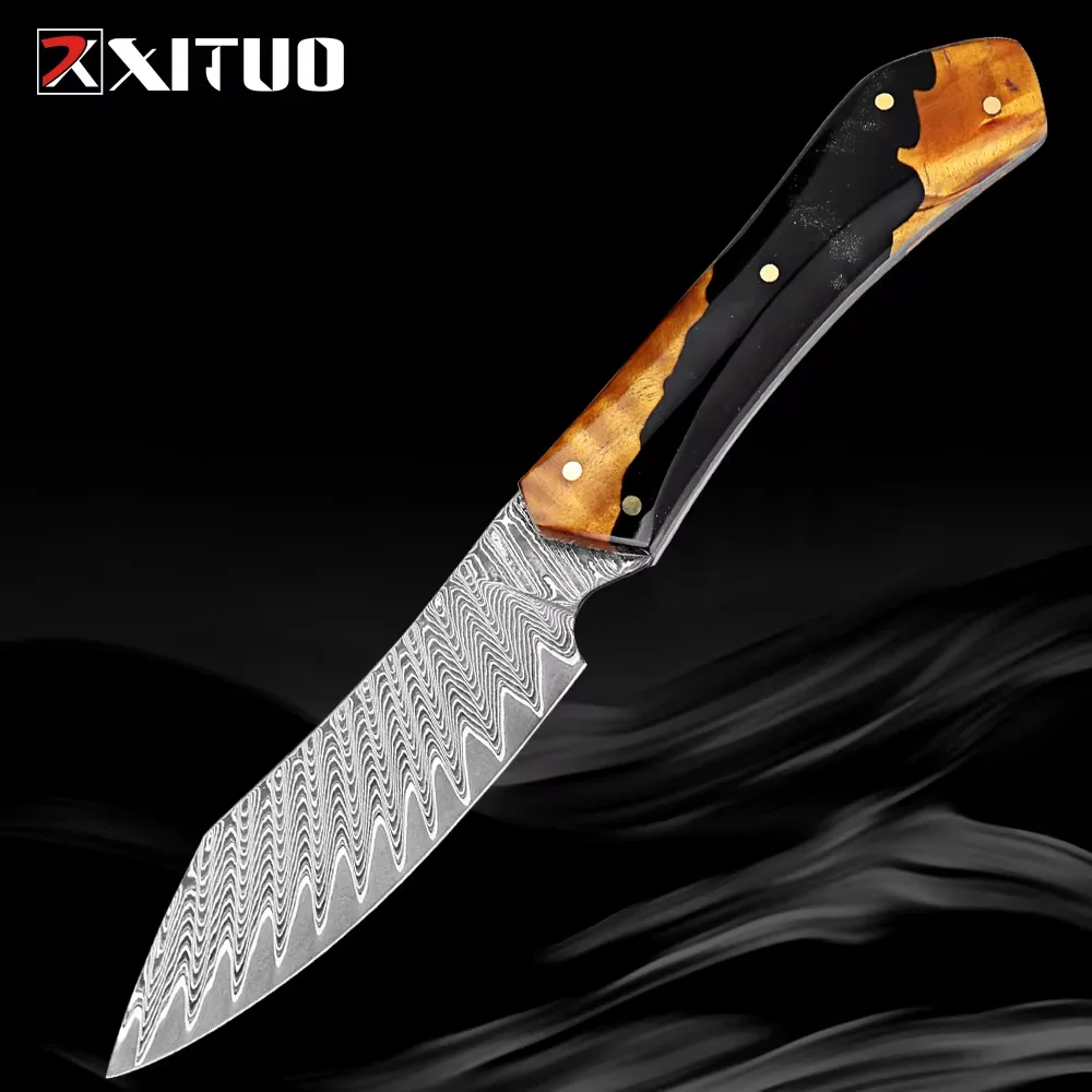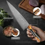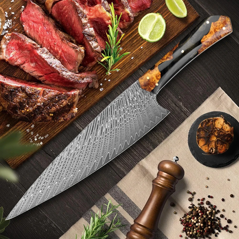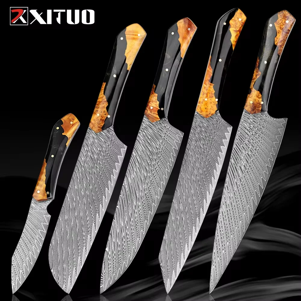 XITUO Chef Knife 8 Inch Kitchen Knife Damascus Steel Edge Retention sharp Slicing Knife Black Resin Stabilised Wood Handle