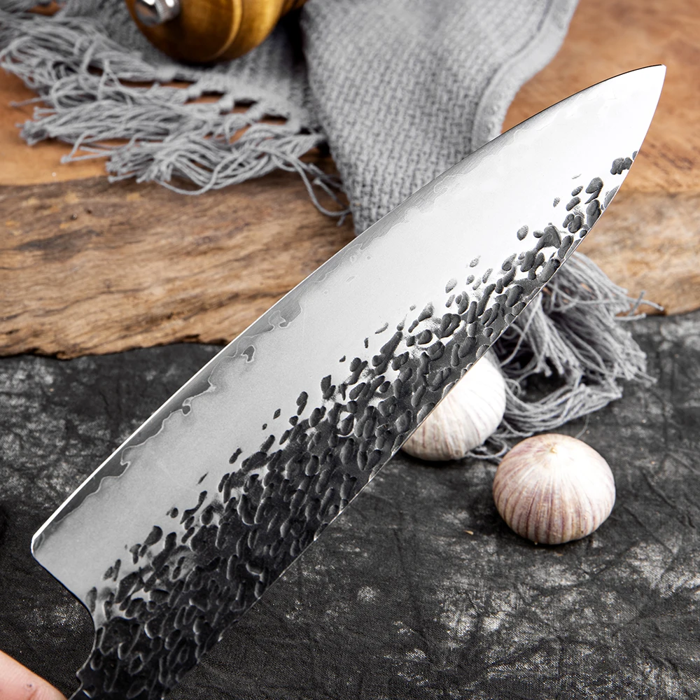 A: We specialize in the production of cost-effective knives, medium and high-end composite steel knives.Such as China 7Cr17Mov stainless steel laser pattern knives, hand-forged knives,Damascus composite steel knives, German steel 1.4116…The handles are made of natural wood such as color wood, G10, Micarta,Pakkawood,rosewood, wenge wood, and olive wood.