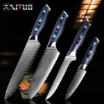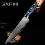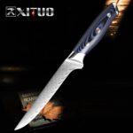 Découvrez le Couteau Gyuto Sakura – Le Chef-d’œuvre Culinaire Suprême Bienvenue dans le monde de l’excellence culinaire avec le Couteau Gyuto Sakura, un chef-d’œuvre artisanal qui révolutionnera votre expérience en cuisine. Ce couteau est bien plus qu’un simple outil, c’est le résultat d’une expertise japonaise millénaire combinée à des technologies de pointe, offrant ainsi une performance exceptionnelle et une esthétique inégalée. 1. Acier Damas Japonais – La Beauté Durable Le Couteau Gyuto Sakura est forgé à partir d’un acier Damas japonais à 67 couches, reconnu pour sa résistance à la corrosion et sa robustesse. Sa surface finement polie révèle un motif de Damas exquis, un véritable plaisir pour les yeux. Avec une dureté de 60 ± 2 HRC obtenue par un traitement thermique sous vide, ce couteau maintient une netteté durable pour une précision de coupe sans égale. 2. Prise en Main Ergonomique – Un Confort Inégalé La conception ergonomique du manche vous offre une prise en main confortable qui vous permettra de découper sans effort. Fabriqué en bois de prunier, le manche est renforcé par des clous luxueux pour une solidité exceptionnelle. Son poids équilibré et son ajustement parfait dans la paume de votre main vous procureront une expérience de coupe sans pareil. 3. Une Lame Parfaite – Pour une Performance Impeccable La lame du Couteau Gyuto Sakura est tout simplement époustouflante. Son motif de Damas en forme d’arêtes de poisson est le reflet du savoir-faire ancestral des artisans japonais. Incroyablement robuste et stable, cette lame affûtée avec précision conservera son tranchant pendant des années. Découpez viandes et légumes en tranches fines avec une facilité déconcertante, faisant de chaque préparation un jeu d’enfant. 4. Polyvalence Exceptionnelle – Quatre Couteaux en Un Le Couteau Gyuto Sakura est un véritable chef d’œuvre de polyvalence. Avec ses différentes tailles de lames, il combine la fonctionnalité de quatre couteaux en un : Couteau Chef 8 pouces : L’outil moderne par excellence pour accomplir une multitude de tâches en cuisine. Couteau Santoku 6,5 pouces : Polyvalent et performant pour émincer, hacher et couper. Couteau Désosseur 5,5 pouces : Pour désosser et découper la viande avec une précision chirurgicale. Couteau d’Office 3,5 pouces : Petit mais puissant, idéal pour les détails et les travaux délicats.