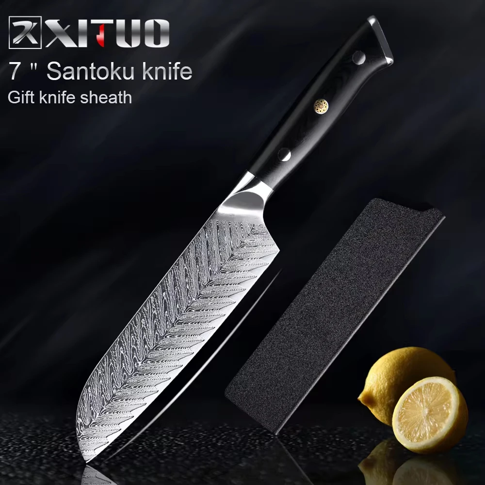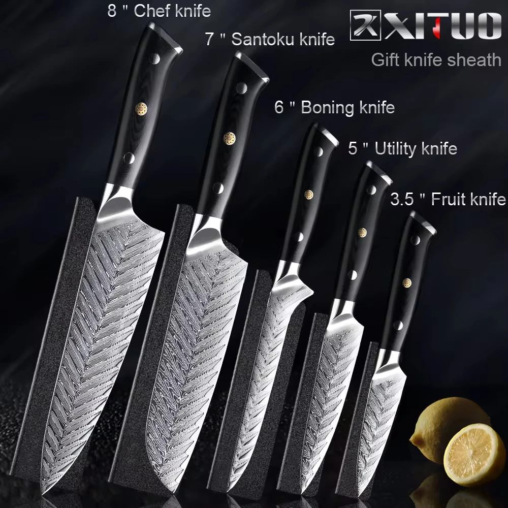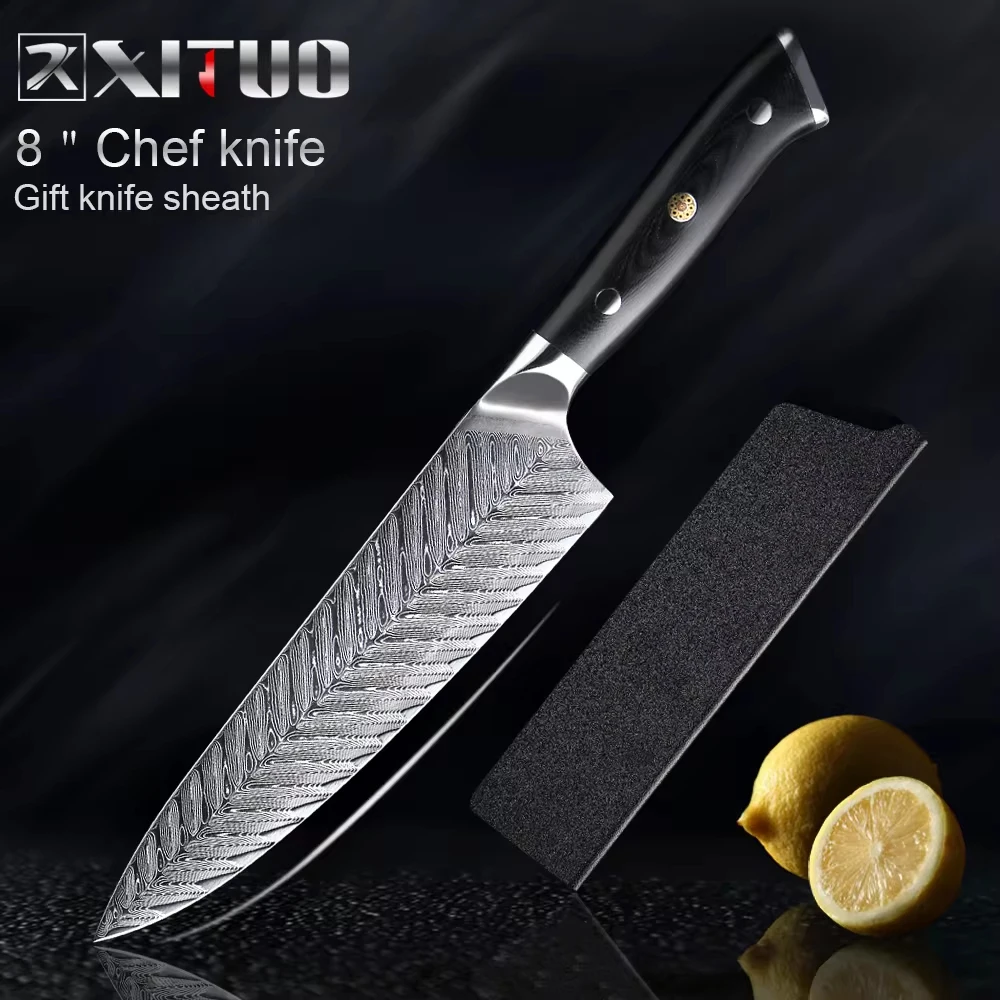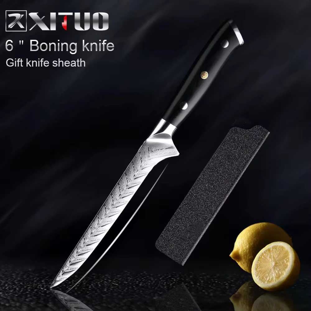 XITUO Damascus Chef Knife VG10 Damascus Steel Professional Kitchen Knife Meat Boning Cleaver Paring Cooking Tools Black G10 Hand
