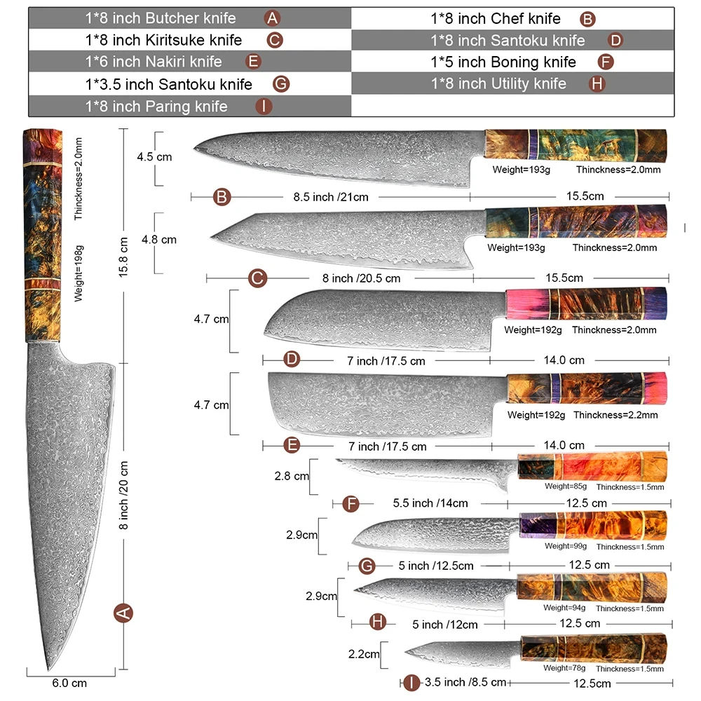 | Description: | 9 Damascus chef knife set |
