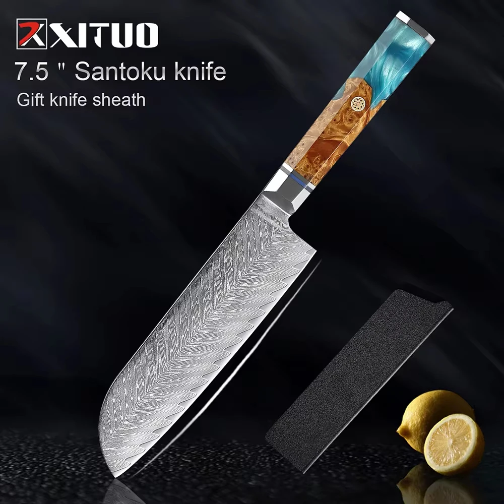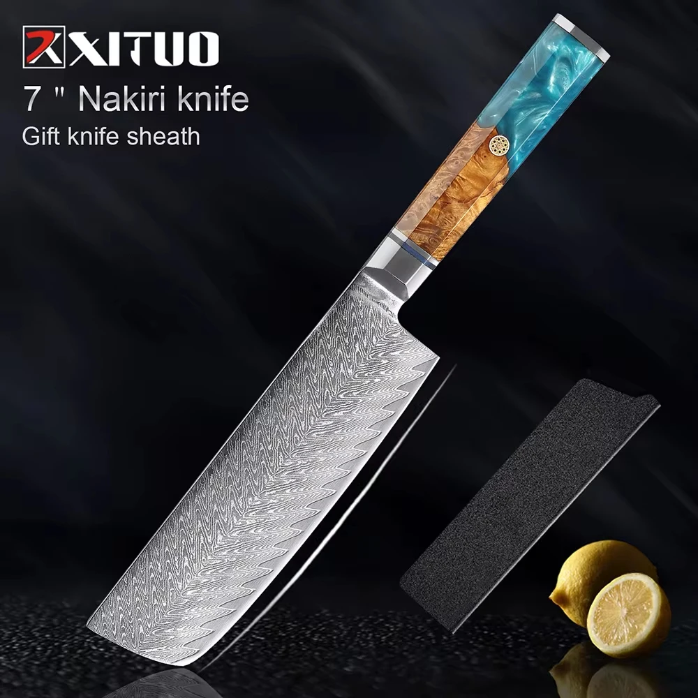 XITUO Damascus Steel Japan Nakiri Knives Razor Sharp Vegetable Knife 7 Inch Multipurpose Asian Kitchen Chef Knife Sharp Cleaver