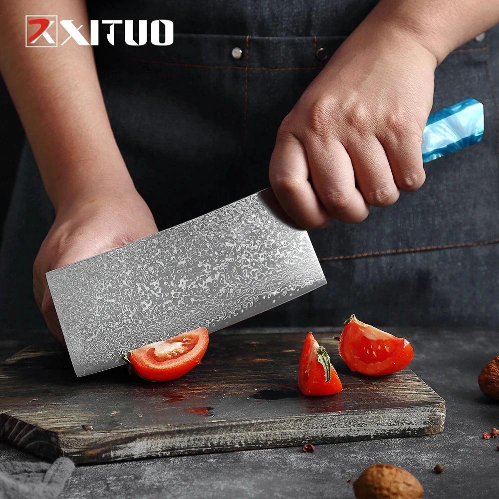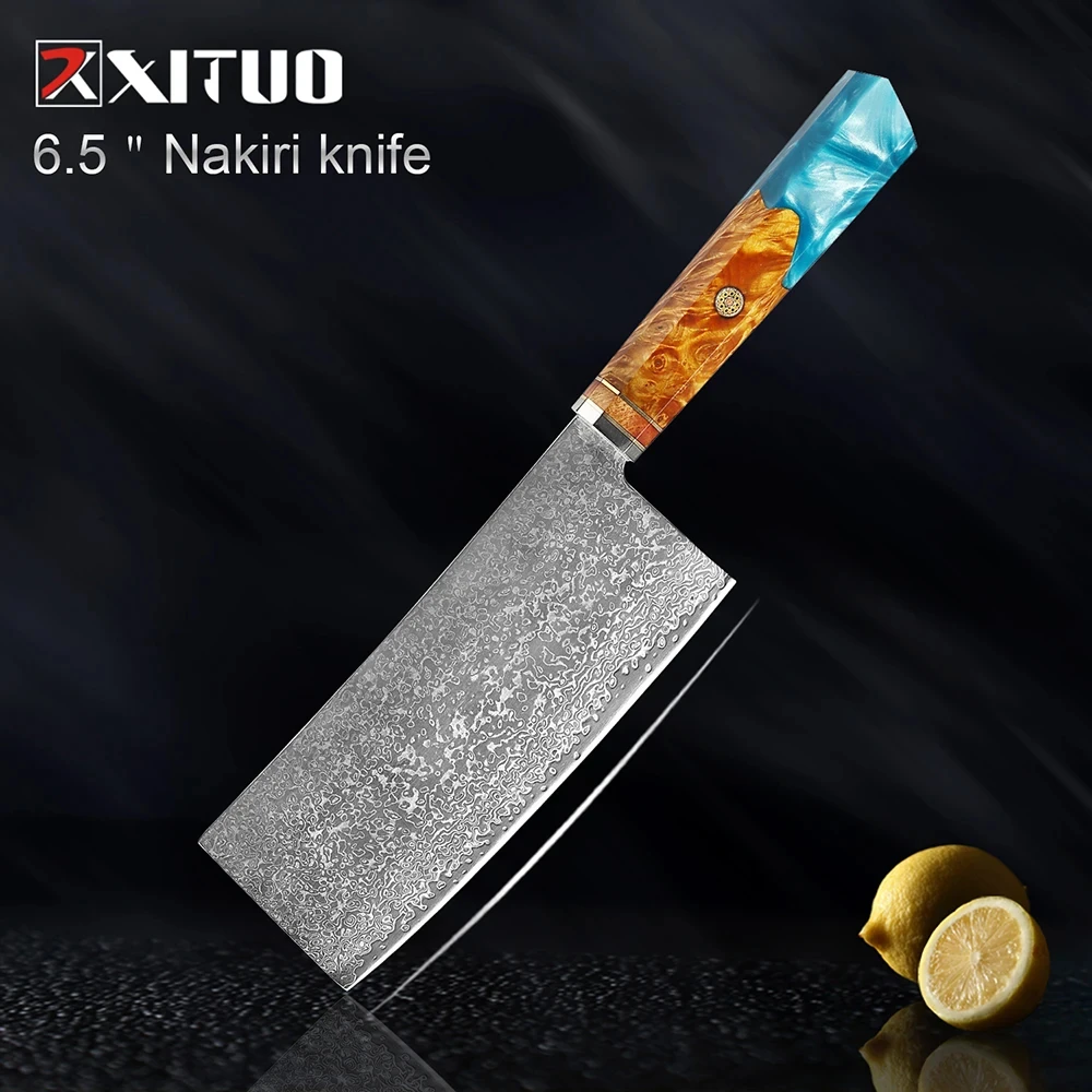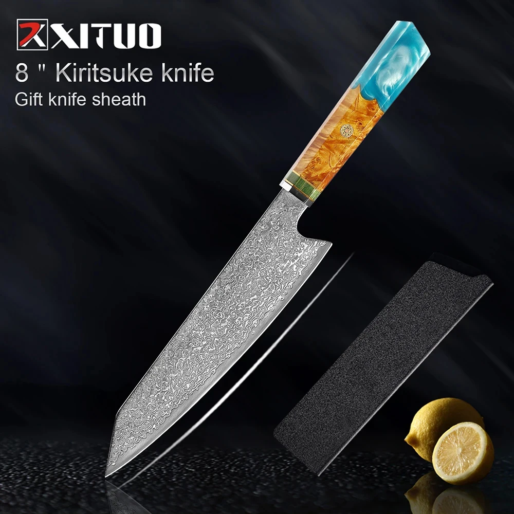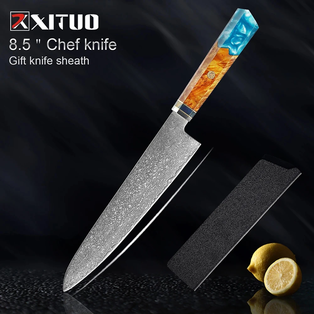 XITUO Damascus Steel Kitchen Knives 1-9PC Set Japanese Chef Knife Cleaver Knife Resin and Wooden Ergonomics Handle Sharp