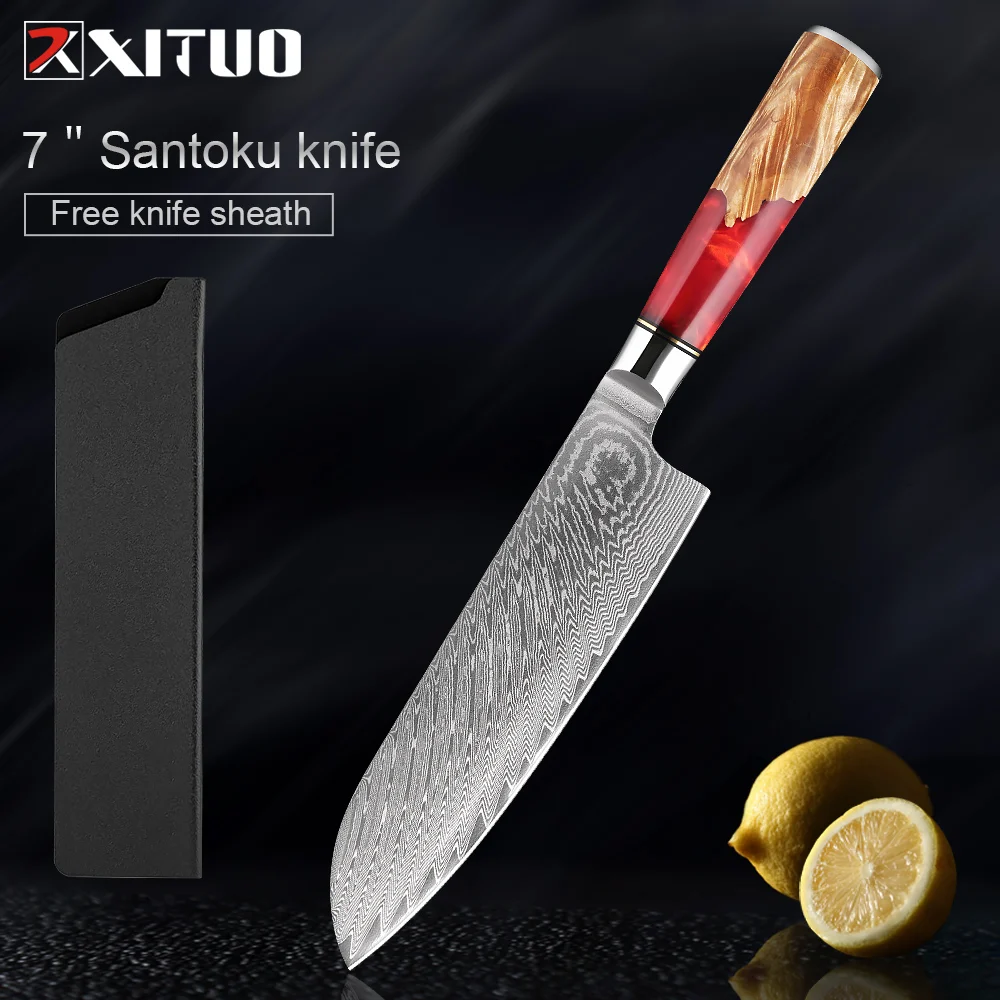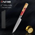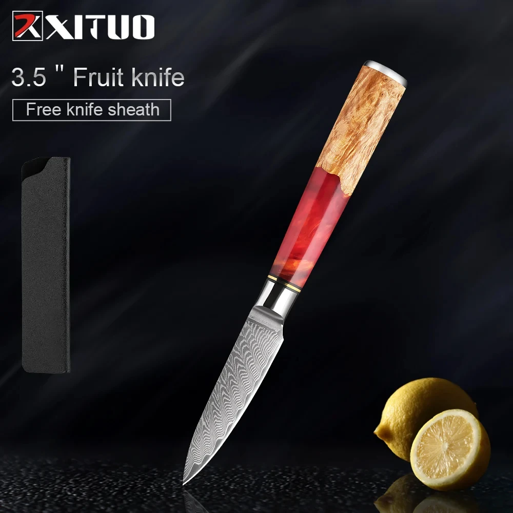 XITUO Damascus Utility Knife 5 Inch Sharp Edge Damascus Steel Chef Knife Ergonomic Hander 67-Layer Forged Blade Kitchen Knife