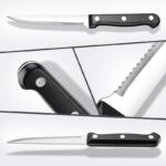- Tranchant Supérieur : La lame en acier à haute teneur en carbone garantit une coupe précise et facile des steaks, du pain et d’autres aliments.