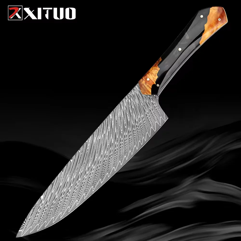 XITUO Handmade Damascus Steel Kitchen Knife Set of 1-5pcs Chef Knife Razor sharp Santoku Paring Knife Full Tang Ergonomic Handle