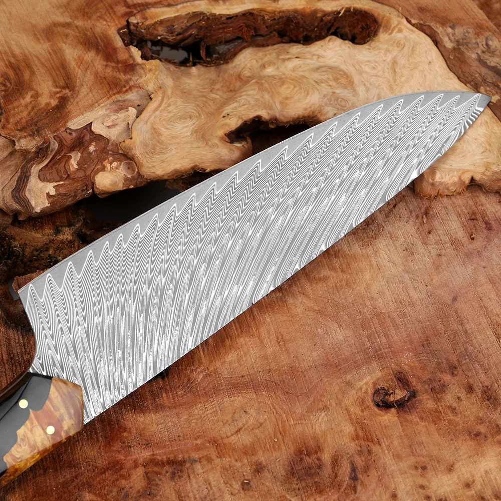 A: We specialize in the production of cost-effective knives, medium and high-end composite steel knives.Such as China 7Cr17Mov stainless steel laser pattern knives, hand-forged knives,Damascus composite steel knives, German steel 1.4116…The handles are made of natural wood such as color wood, G10, Micarta,Pakkawood,rosewood, wenge wood, and olive wood.