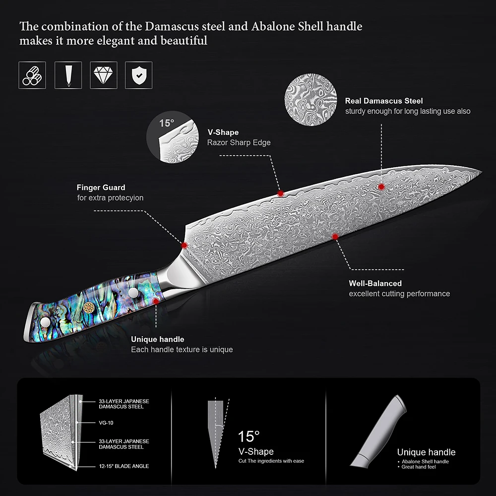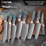 1-9 PCS Damascus Steel Kitchen Knives Abalone Shell Handle