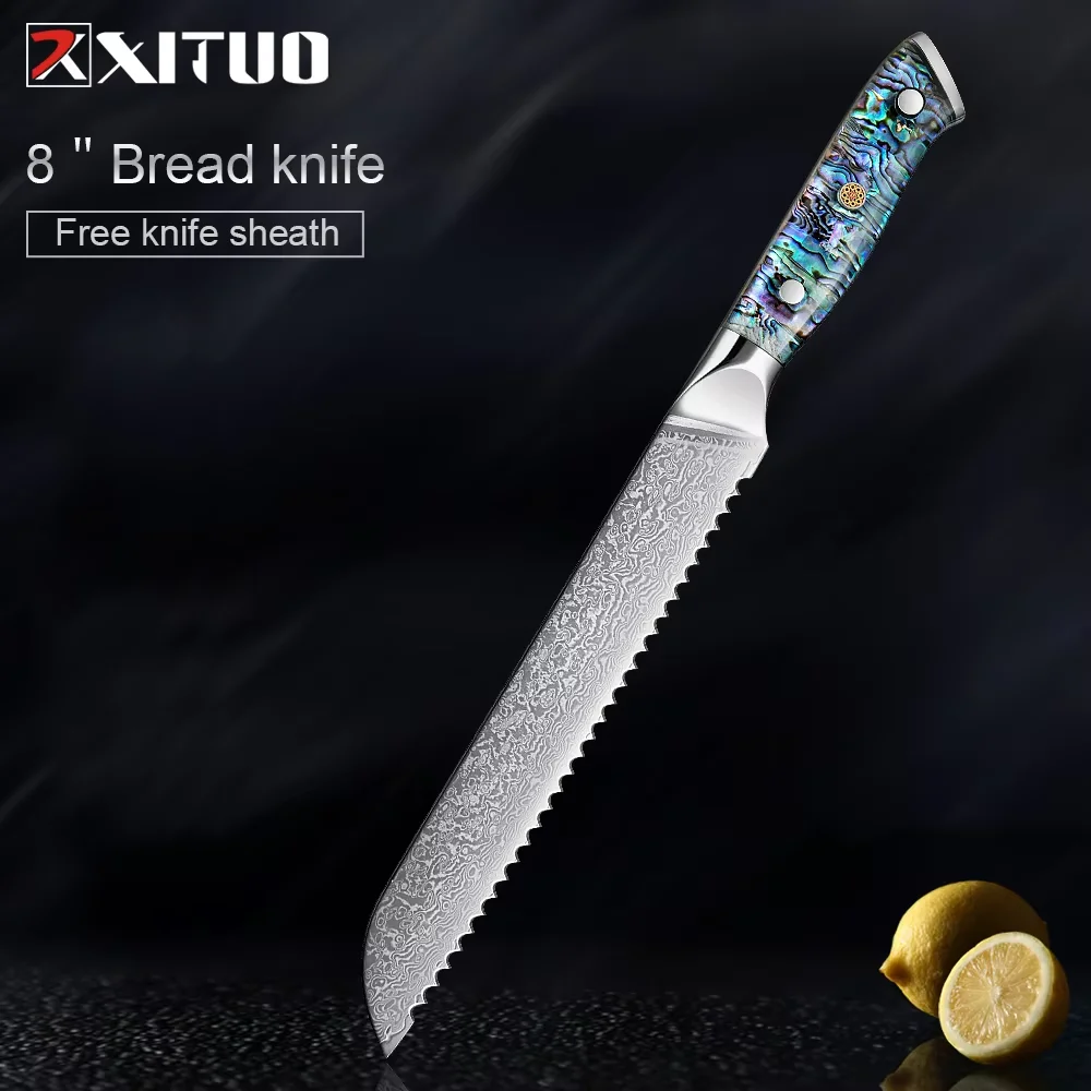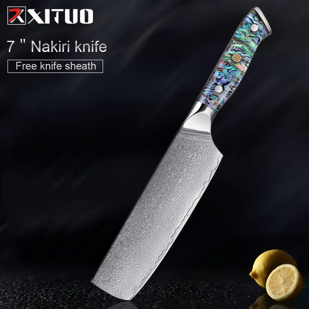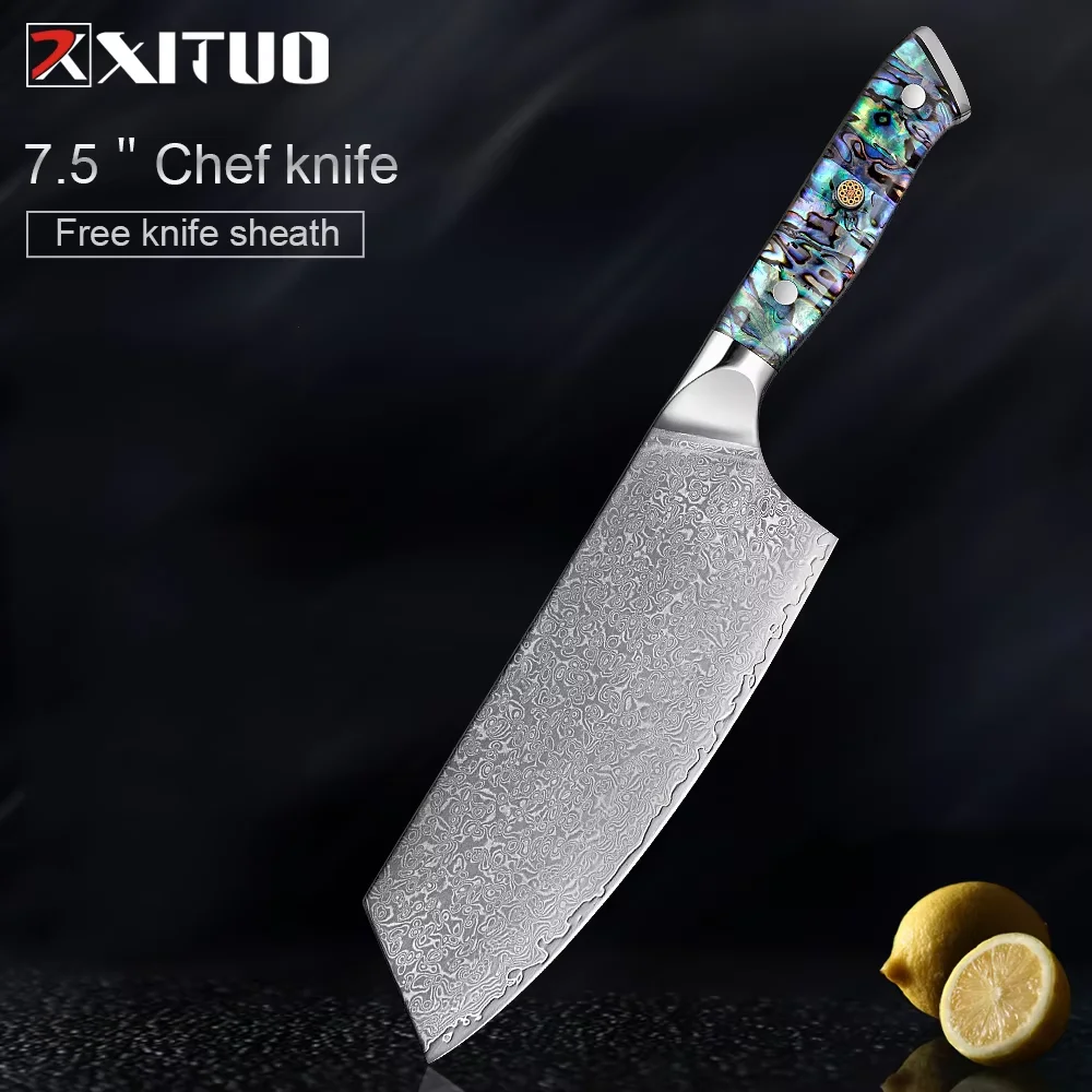 XITUO High Quality 67 Layer VG10 Damascus Steel Kitchen Knife Set Gorgeous Abalone Handle Chef Knife Santoku Knife Wholesale