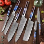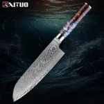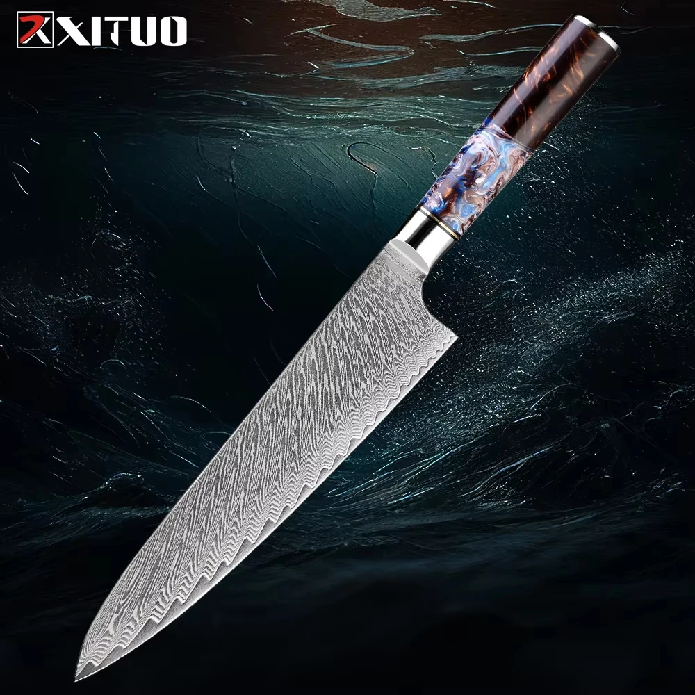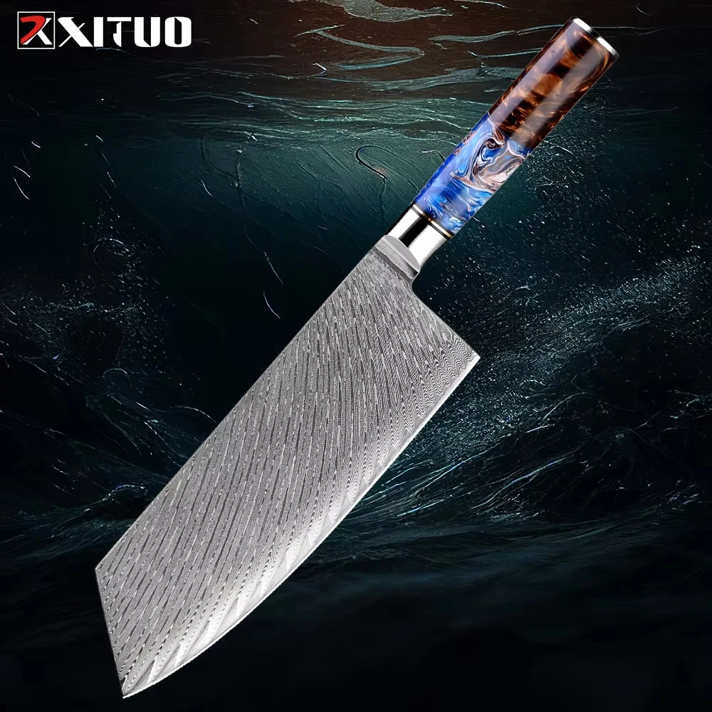 XITUO High Quality Damascus Kitchen Knife 1~9PCS Set Professional Chef Knife Hotel Household Slicing Knife Gorgeous Resin Handle