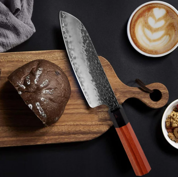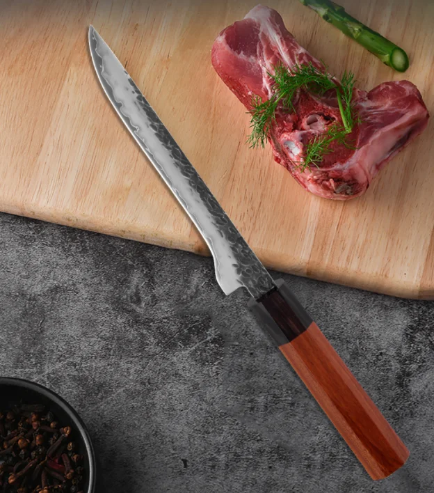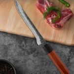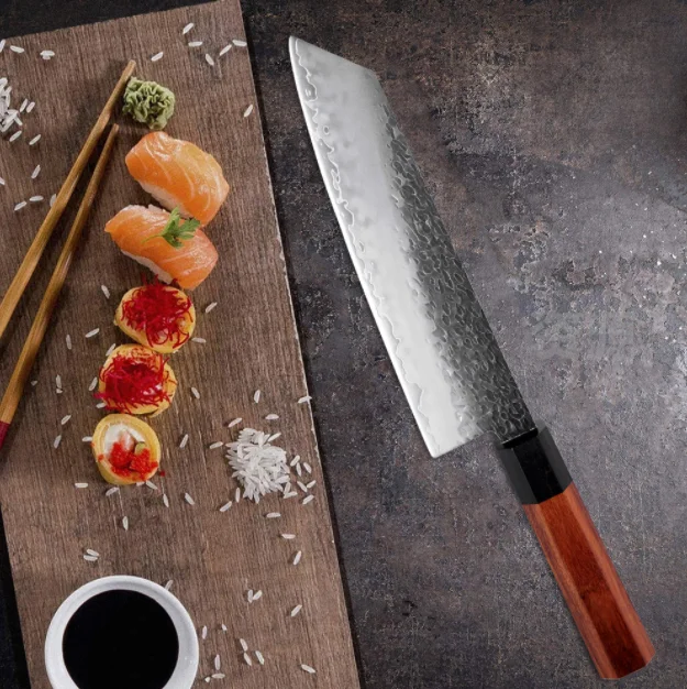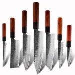 A: We specialize in the production of cost-effective knives, medium and high-end composite steel knives.Such as China 7Cr17Mov stainless steel laser pattern knives, hand-forged knives,Damascus composite steel knives, German steel 1.4116…The handles are made of natural wood such as color wood, G10, Micarta,Pakkawood,rosewood, wenge wood, and olive wood.