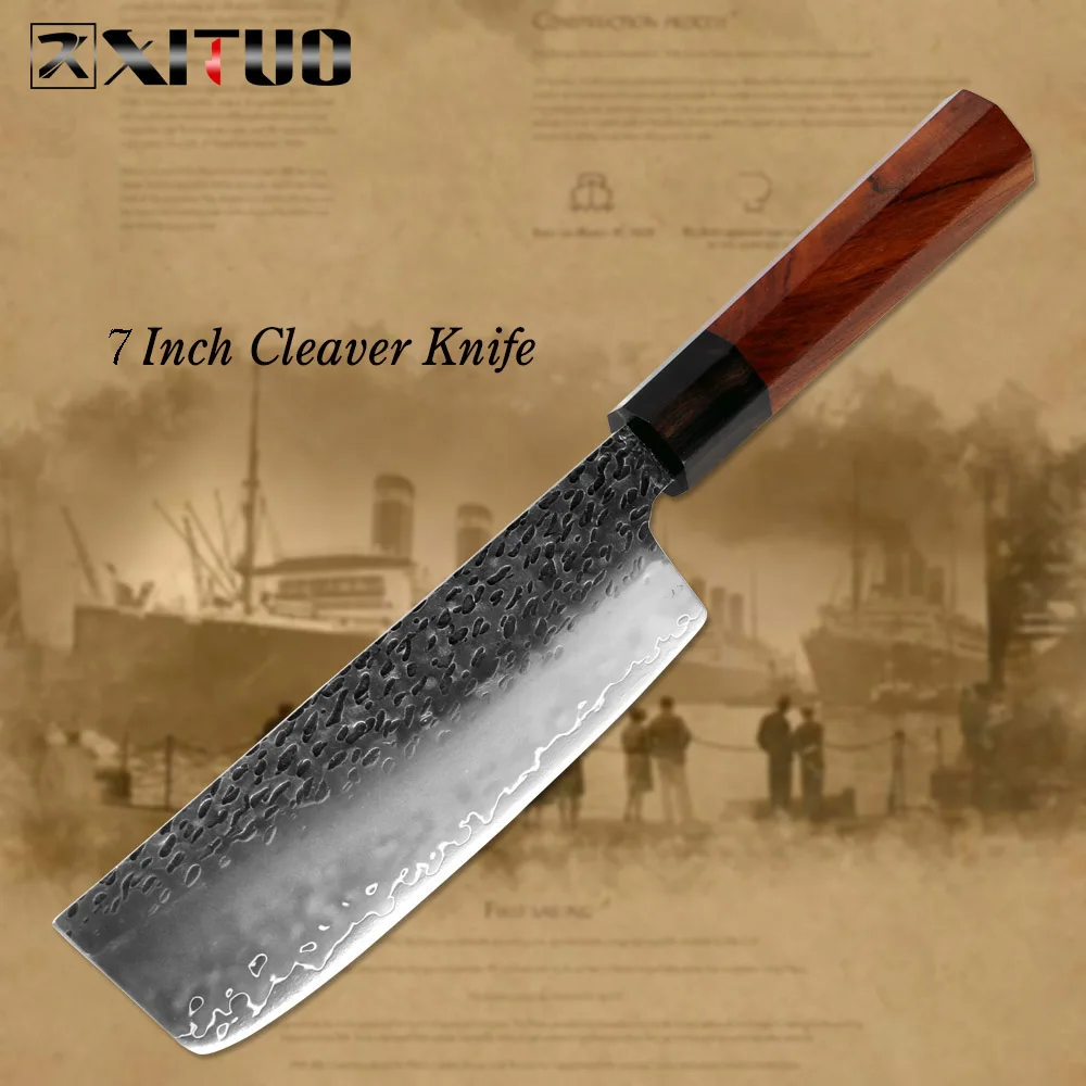 XITUO Kitchen Chef Knife Three-layer Steel Handmade Forged Sharp Cleaver Kiritsuke Boning Santoku Paring Knives Cooking Tools