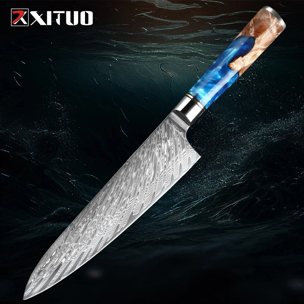 XITUO Kitchen Knife Premium 67-layer VG10 Damascus Stainless Steel Chef Knife Carving Bread Knife Stable Wood and Resin Handle