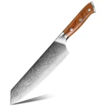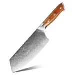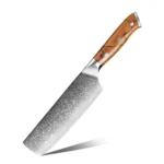 A: We specialize in the production of cost-effective knives, medium and high-end composite steel knives.Such as China 7Cr17Mov stainless steel laser pattern knives, hand-forged knives,Damascus composite steel knives, German steel 1.4116…The handles are made of natural wood such as color wood, G10, Micarta,Pakkawood,rosewood, wenge wood, and olive wood.