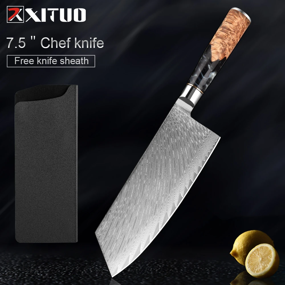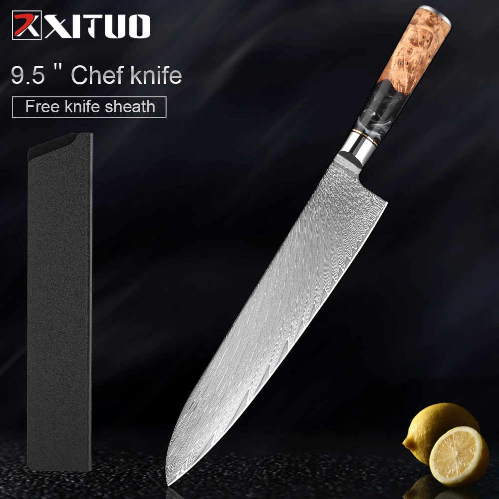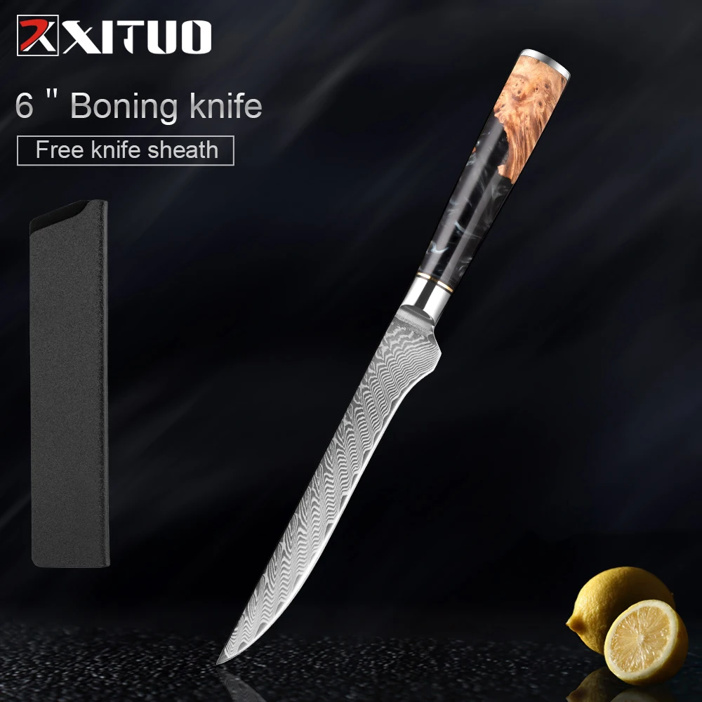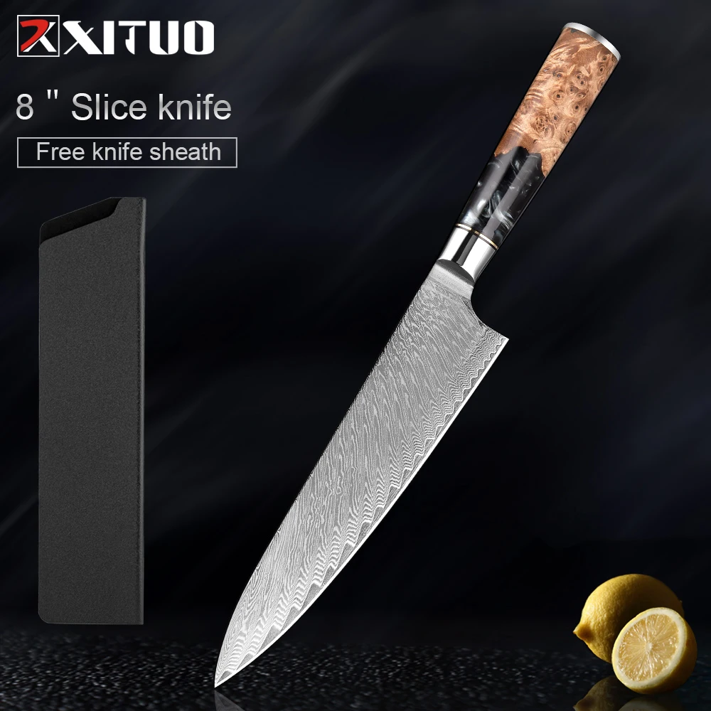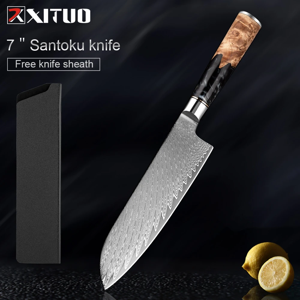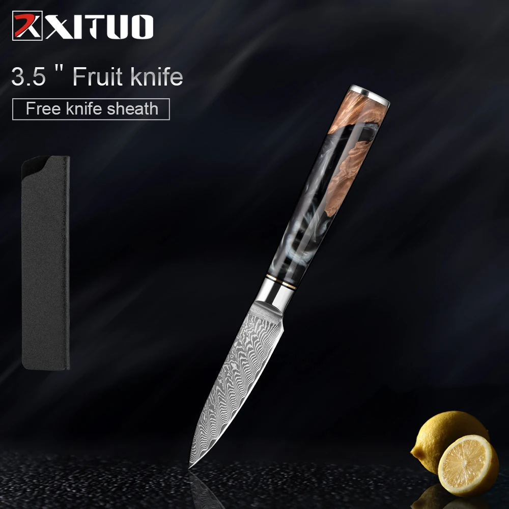 XITUO Premium Damascus VG10 67 Layer Carbon Steel Utility Kitchen Knife Set Black Resin Handle Chef Knife Cooking Tools