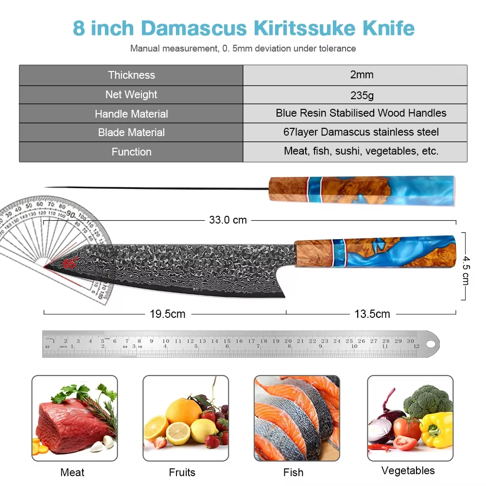 8 Inch Damascus Kiritsuke Knife