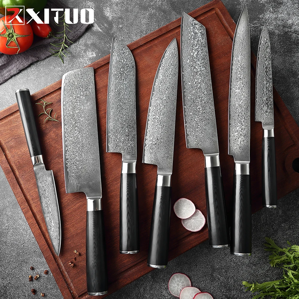 XITUO Quality Damascus Steel Japan VG10 Chef Knife Edge Kitchen Knife Set Black G10 Handle Factory Wholesale