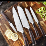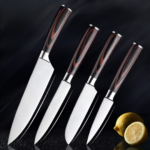 - Quels sont les différents types de couteaux inclus dans cet ensemble ? L’ensemble comprend un couteau chef de 8″, un couteau de 5.5″, un couteau utilitaire de 5″ et un couteau d’office de 3.5″.