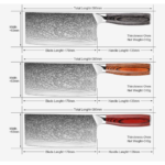 • Matériaux de qualité : Acier Damas japonais offrant une dureté de 60±2 HRC grâce à un traitement thermique sous vide.