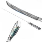 Le Couteau Japonais Abalori est un outil de cuisine exceptionnel, conçu pour les chefs professionnels, les passionnés de cuisine et les débutants. Fabriqué avec un acier Damas de haute qualité et doté d’un manche en nacre d’ormeau éblouissant, ce couteau offre à la fois fonctionnalité et esthétique.